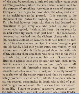 ब्राउटन नावाचा एक इंग्रज शिंद्याच्या सैन्यात होता. त्याने लिहिलेले Letters from a Mahratta Camp हे पुस्तक १८०९ च्या पुढेमागच्या काळाची बरीच मनोरंजक माहिती देते. त्यात खालील वर्णन दौलतराव शिंदे ह्यांच्या होळीच्या सणाचे आहे आणि त्यात शिंद्यांच्या सैन्यातहि आगीचा बंब होता असे नमूद केलेले आहे.